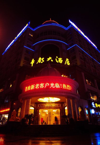 帝都大酒店是泸州市地标性建筑物,位于龙马潭区龙马大道二段,区政府斜对面,这里是龙马新城政治、经济、文化的中心,酒店建筑面积达10000平米以上,是一所集客房、餐饮、咖啡吧、KTV、浴足休闲、会议中心为一体的精品酒店,另设对外地下停车场。距离客运中心站约2.3公里,公交线路四通八达。愿以舒适的环境,优质的服务,合理的价格,赢得您的信赖。真诚欢迎朋友们的光临!
